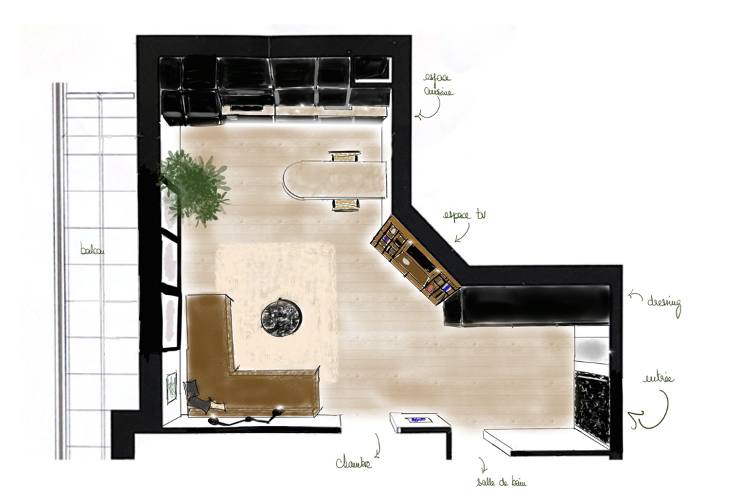 Projet: Aménagement et agencement de la pièce principale d’un appartement